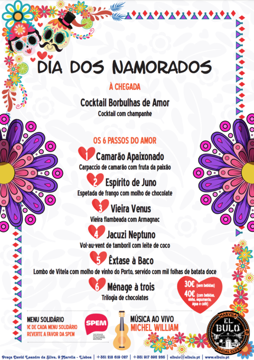 O menu é solidário e tal como no ano passado há uma vertente de responsabilidade social: 1€ de cada menu reverterá a favor da SPEM - Sociedade Portuguesa de Esclerose Múltipla. Junta-se a estas coisas boas a música ao vivo de Michel William, concorrente da última edição do The Voice.