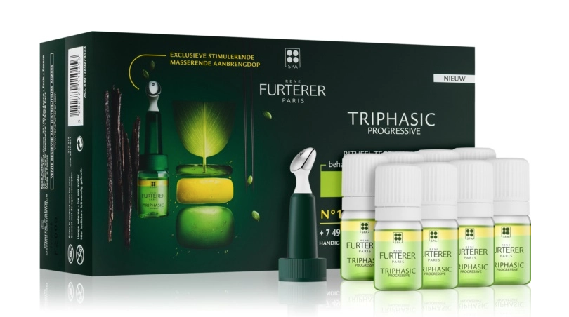 A fórmula TRIFÁSICA PROGRESSIVA, com 3 fases ativas, atua nas três fases decisivas do ciclo de vida dos cabelos (Nascimento, Crescimento, Maturidade) para desacelerar a queda, estimular o crescimento e prolongar a vida dos fios. A partir do primeiro mês, a densidade do cabelo aumenta e o couro cabeludo fica menos visível.